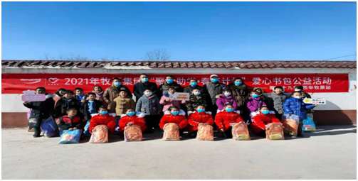 在官莊村“愛心基金會”奉獻(xiàn)愛心的同時(shí),當(dāng)日下午, “牧原集團(tuán)”和鐵爐村愛心人士在鐵爐村發(fā)起愛心捐贈活動,向158名小學(xué)生贈送了書包和文具盒。