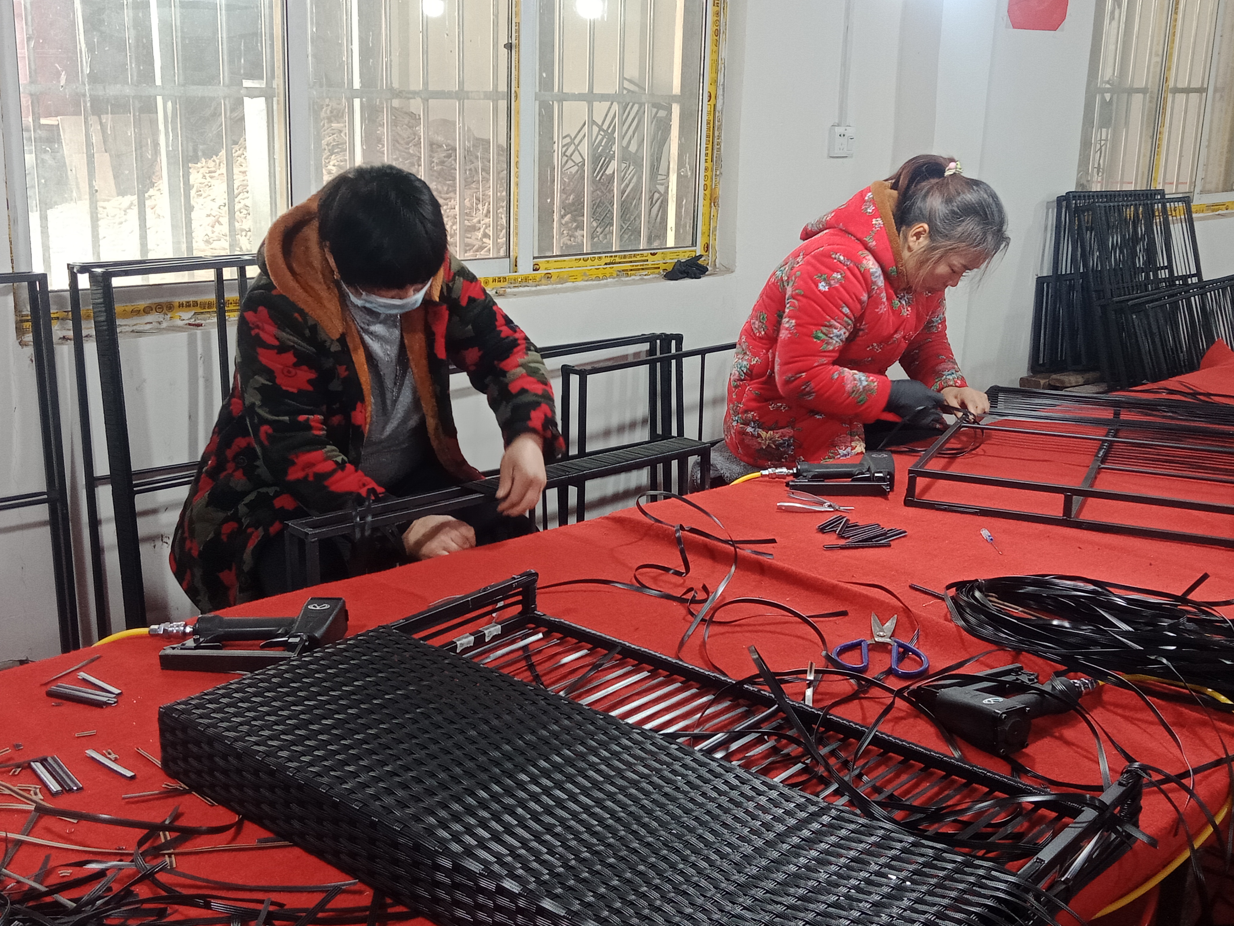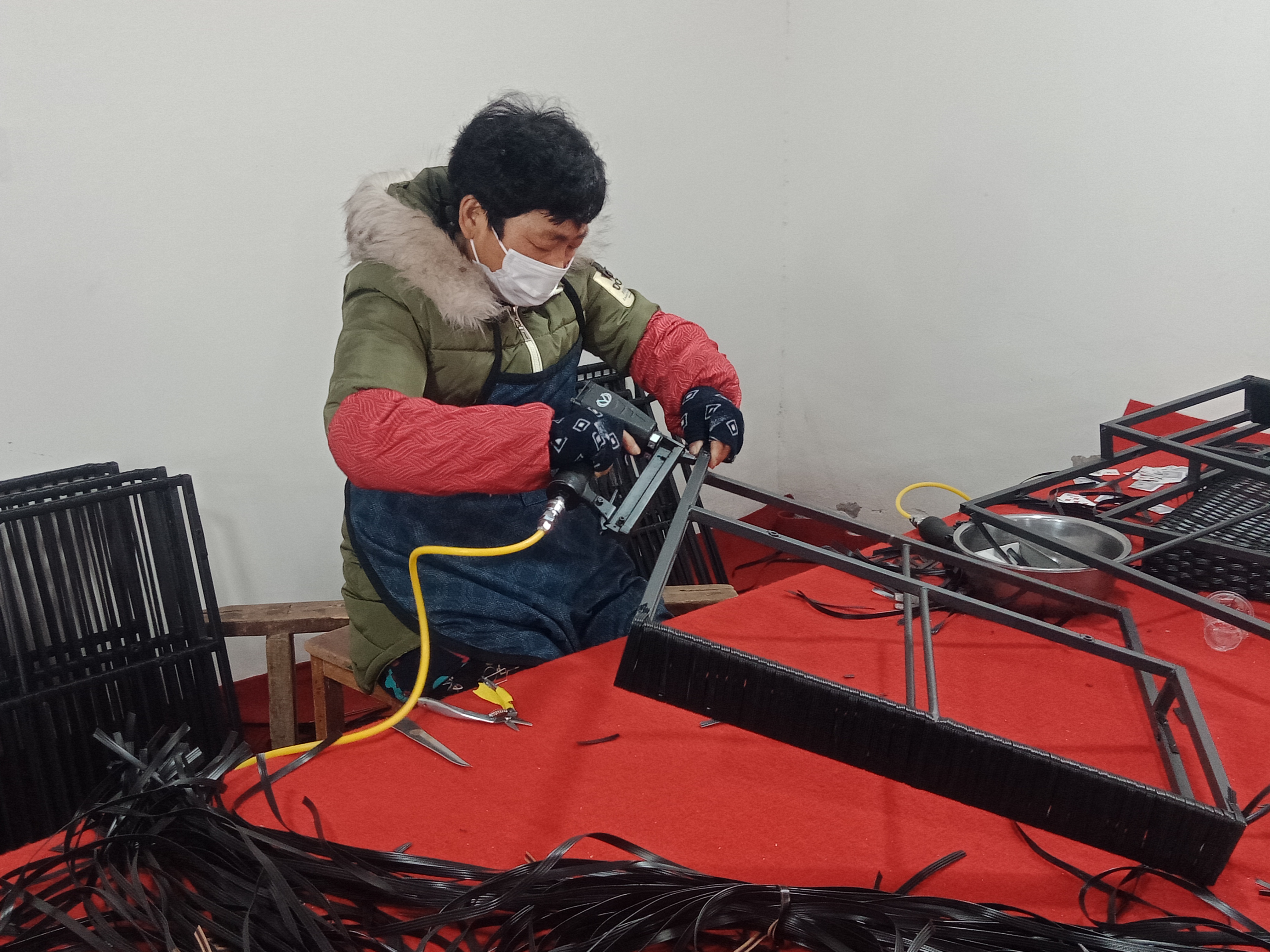 戶外藤編沙發(fā)巧媳婦工程加工車間是商水縣袁老鄉(xiāng)賈寨行政村村委為幫村民脫貧致富而引進(jìn)的,生產(chǎn)為訂單作業(yè),產(chǎn)品多數(shù)銷往國外。該村加工車間是今年1月開工的。