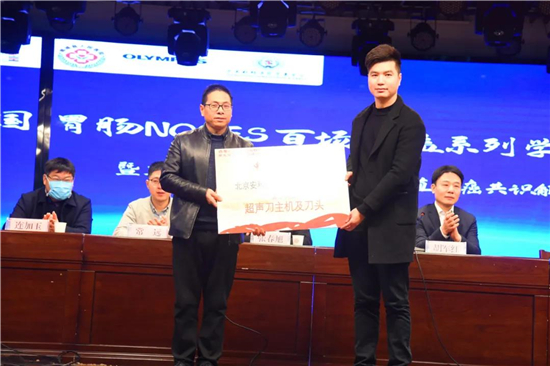 楊雨旺書記介紹了鄲城縣人民醫(yī)院胃腸外科的基本情況以及在近年發(fā)展中取得的長足進步。胡軍紅教授在致辭中指出,NOSES作為一種微創(chuàng)中的微創(chuàng)手術(shù),是一種醫(yī)患共贏的好技術(shù),是未來微創(chuàng)外科發(fā)展的趨勢和方向之一。他對不辭勞苦開展公益學術(shù)講座,推廣NOSES理念和技術(shù)的各位專家表示感謝,同時預祝系列學術(shù)活動圓滿成功。 中國胃腸NOSES聯(lián)盟向鄲城縣人民醫(yī)院贈送了《胃腸手術(shù)策略與操作圖解》等專業(yè)書籍20本和超聲刀一套。
