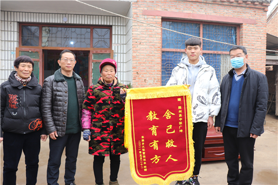 危難之際顯身手,見義勇為的義舉實為可貴。1月23日,陳州高中發(fā)出倡議,號召全校師生向勇救落水兒童的學生張廣坤學習。聞聽救落水兒童的張廣坤腳踝受傷,該校校長于當日帶隊到朱集鄉(xiāng)大張營村看望在家休養(yǎng)的張廣坤,送去學校的關懷。