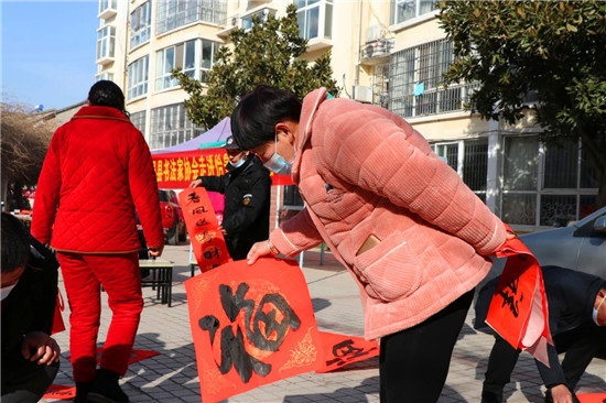 “春節(jié)前夕,縣書法家協(xié)會為群眾傾心打造文化盛宴,組織若干場義寫春聯(lián)進社區(qū)活動,旨在弘揚祖國傳統(tǒng)文化,豐富群眾文化生活?!甭挂乜h書法家協(xié)會主席韓文甫說。