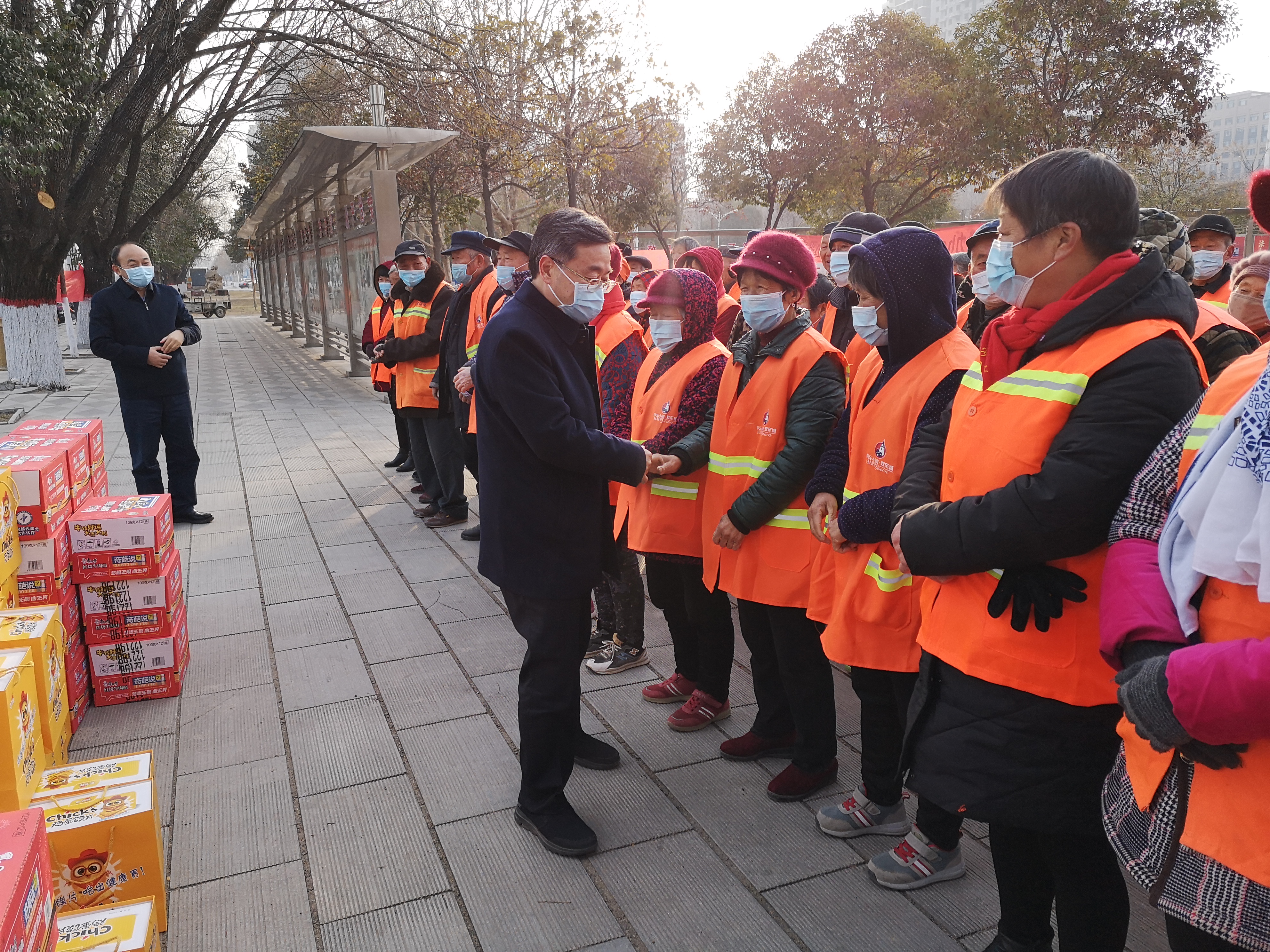 在行政新區(qū)全民健身廣場,皇甫立新、劉國慶同環(huán)衛(wèi)工人們一一握手,并代表縣四個班子向堅守一線的環(huán)衛(wèi)工人致以新春的祝福,對他們在過去一年里付出的辛勤勞動表示衷心感謝。皇甫立新說,一年來,環(huán)衛(wèi)工人們起早貪黑、兢兢業(yè)業(yè),為改善居民生活環(huán)境和提升城市形象付出很多心血和汗水,取得了良好效果,城區(qū)環(huán)境和城市面貌有了很大改善,得到了社會各界的一致好評,希望大家繼續(xù)發(fā)揚愛崗敬業(yè)、無私奉獻的精神,把縣城衛(wèi)生打掃的更加干凈、整潔,為全縣人民歡度春節(jié)創(chuàng)造一個干凈舒適愉快的環(huán)境。