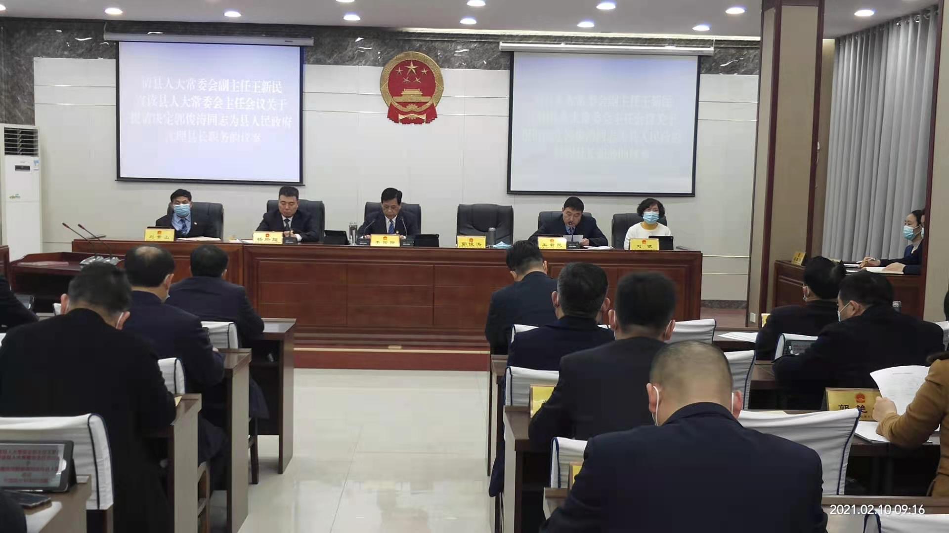 2月10日,鹿邑縣十五屆人大常委會第二十八次會議召開,會議決定任命郭俊濤同志為鹿邑縣人民政府副縣長、代理縣長。