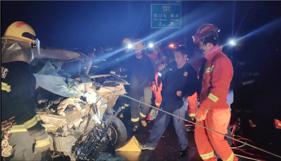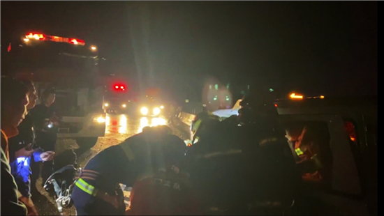 2月21日19時(shí)許,大廣高速周口段2064KM附近發(fā)生一起交通事故,大貨車沖破護(hù)欄與對向車道內(nèi)的兩輛私家車發(fā)生碰撞,司機(jī)和一名5歲女童被困車中。接到報(bào)警后,民警、消防、醫(yī)護(hù)人員迅速趕到現(xiàn)場開展救援,20時(shí)39分兩人被救出并接受進(jìn)一步治療。