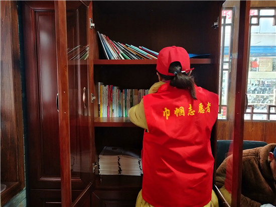 上午9點,天空中偶有零星小雨,市民驛站里卻有幾位市民正在這里讀書,古色古香的書柜,整齊地擺放著各類書籍,文學、百科、養(yǎng)生書籍俱全。周口市慈孝文化促進會的志愿者每天都在值班,隨時打掃衛(wèi)生,為市民提供力所能及的幫助。