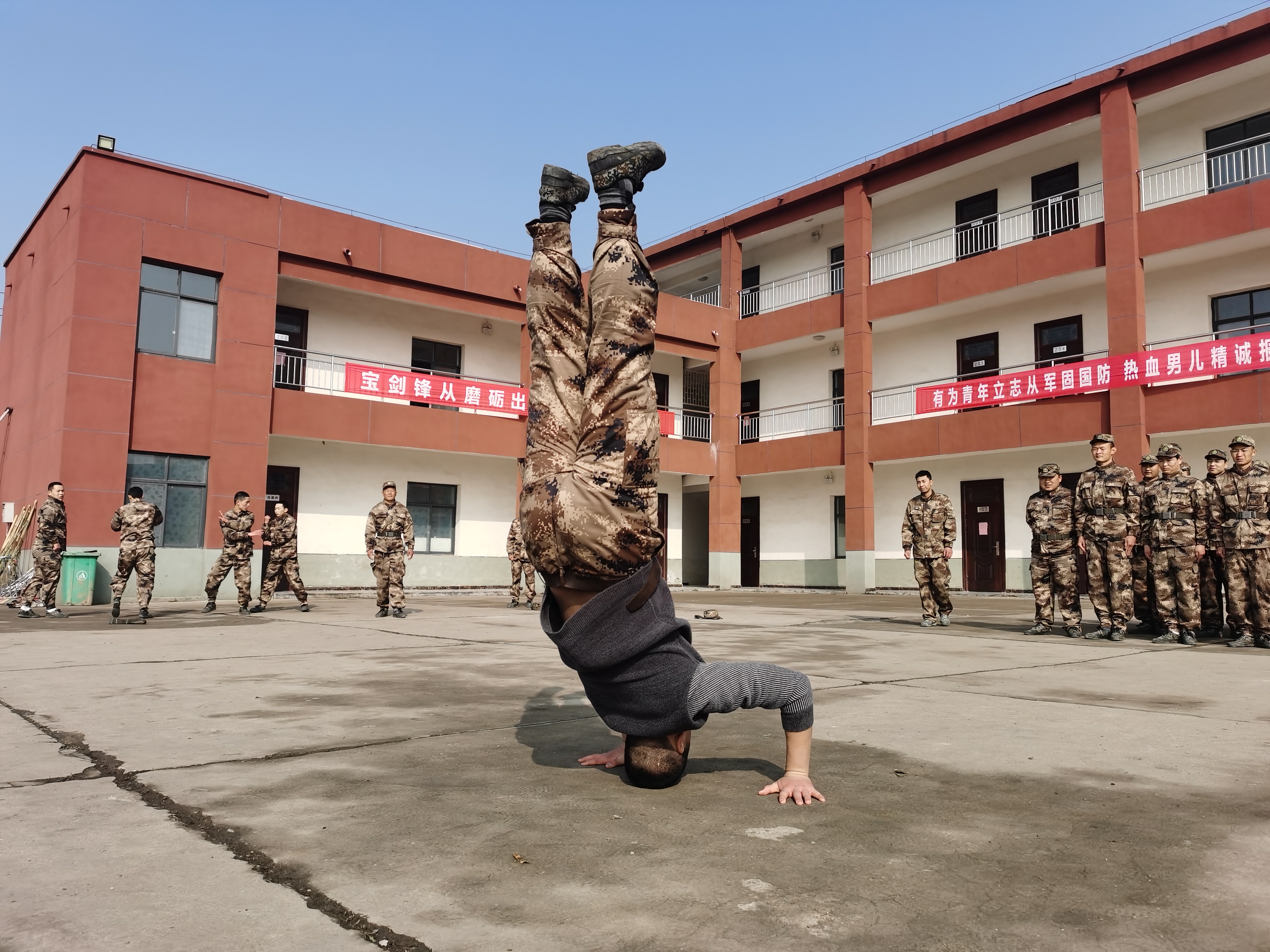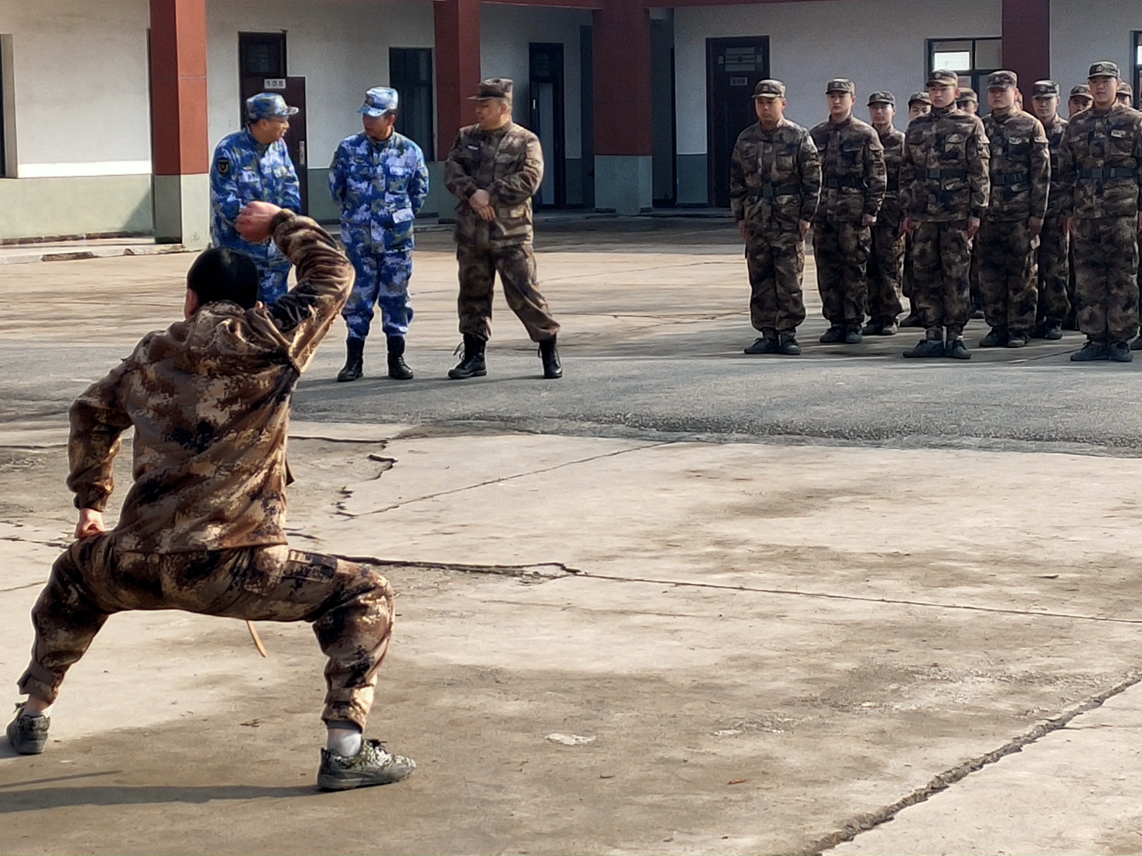 “報(bào)告首長,我叫趙三朋,畢業(yè)于武漢體育學(xué)院,武術(shù)套路、散打和兵器專業(yè)?!痹趹?zhàn)友們的歡呼聲中,趙三朋主動請纓表演了一套傳統(tǒng)武術(shù)套路,只見他一招一式行云流水、虎虎生威 ,前后空翻嫻熟到位、收放自如,迎得戰(zhàn)友們陣陣喝彩聲,湯維政也禁不住連聲稱贊。