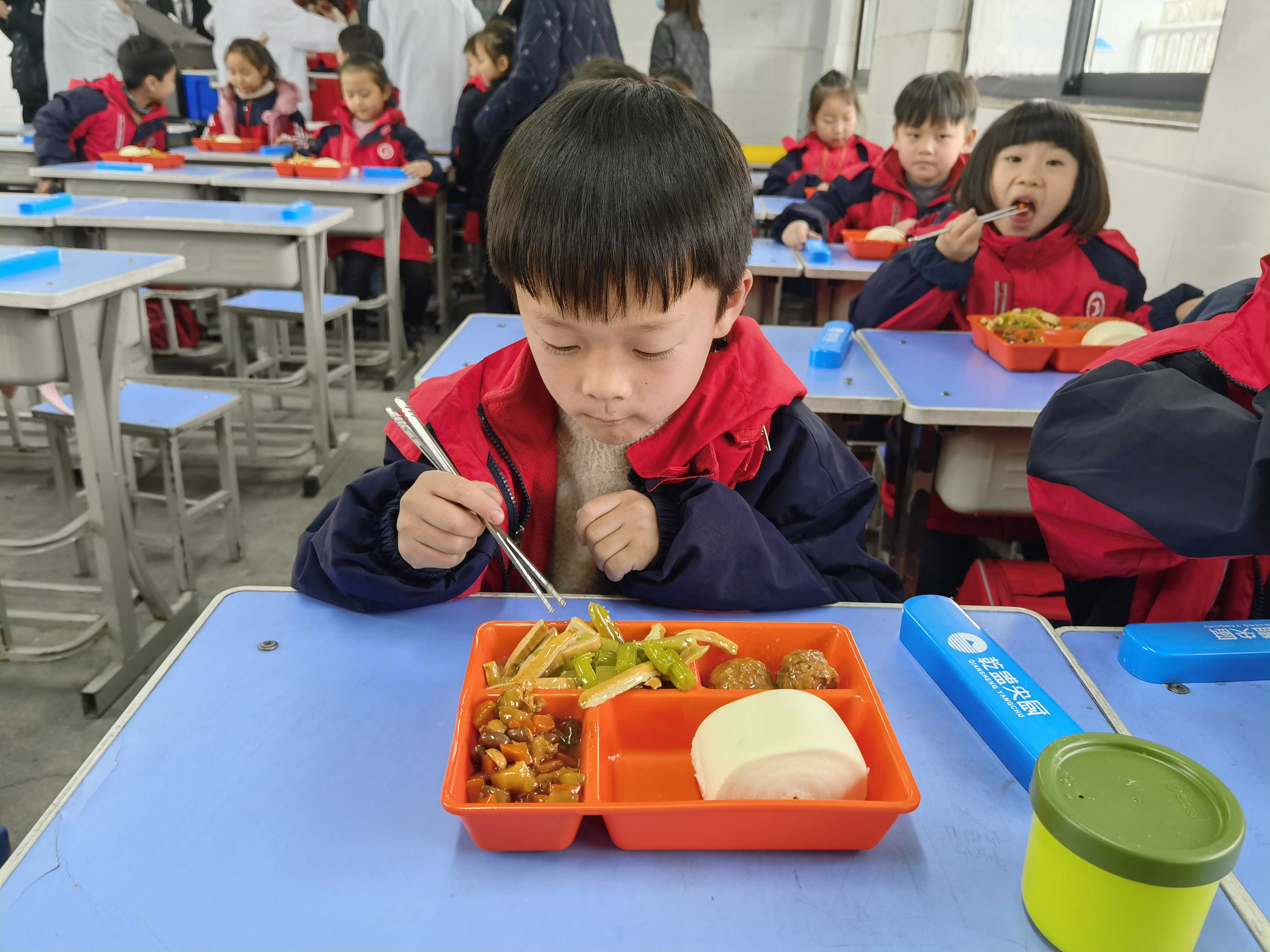 七一路二小校長邵在斌說:“中午配餐和延時(shí)服務(wù)是市委、市政府實(shí)實(shí)在在的惠民工程。為了做好這項(xiàng)工作,我們前期去鄭州參觀學(xué)習(xí),回來按照文件精神去做。中午配餐解決很多問題,一是家長接學(xué)生難,輔導(dǎo)作業(yè)難的問題,我們中午配有語文老師,晚上配有數(shù)學(xué)老師給學(xué)生輔導(dǎo)作業(yè)。二是延緩了學(xué)校周邊交通壓力。三是能保證學(xué)生休息時(shí)間,為了配合延時(shí)服務(wù),我們的上課時(shí)間從8點(diǎn)調(diào)整到8點(diǎn)30分,但開門時(shí)間還是7點(diǎn)20分,方便上班早的家長送學(xué)生。本次送餐1200多份,每班用餐時(shí)兩名教師在崗,吃完飯后留一名老師輔導(dǎo)學(xué)生。今天我們?nèi)珕T監(jiān)督配餐,領(lǐng)導(dǎo)全部在崗,校長分包樓,中層領(lǐng)導(dǎo)分包層,責(zé)任到人,保證每個(gè)孩子用餐安全,讓每位家長都安心?!雹?