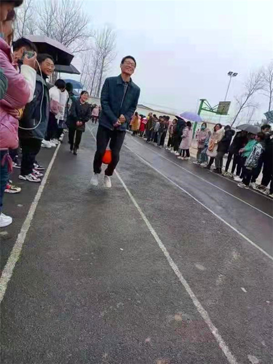 隨著裁判員一聲令下,比賽開始,參賽老師們快如風、急如電,奮力沖向前方,把球接力給下一位隊員。接球的隊員等待已久,接過球立馬向前飛奔。整個操場上,加油聲、喝彩聲此起彼伏,熱鬧非凡。學生們擠滿了賽場,用熱烈的掌聲和歡呼聲為老師們加油,期盼著自己的老師有精彩的表現(xiàn)。