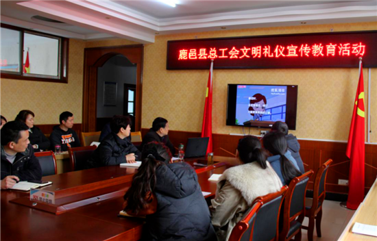 鹿邑縣總工會全體人員集中觀看了《常州市市級機(jī)關(guān)工作人員文明禮儀宣傳教育片》。從接聽電話、公務(wù)接待、參加會議、乘坐電梯、公共場所、文明觀演、文明出行等詳細(xì)介紹了機(jī)關(guān)工作人員應(yīng)做到的禮儀規(guī)范,提醒大家各項(xiàng)禮儀中的注意事項(xiàng)。