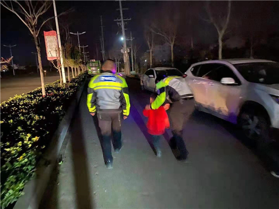 鄲城:夜班交警護送迷路小孩回家