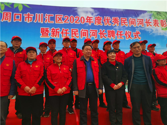 會場設(shè)在中州路橋北頭向東100米的沙潁河北岸。區(qū)河長辦主任李海濤宣讀《川匯區(qū)河長制辦公室關(guān)于表彰2020年優(yōu)秀“民間河長”的決定》《周口市川匯區(qū)河長制辦公室關(guān)于聘任“民間河長”的通知》。與會領(lǐng)導(dǎo)共同為10名受表彰的優(yōu)秀“民間河長”頒發(fā)榮譽證書,為20名新任“民間河長”頒發(fā)聘任證書。