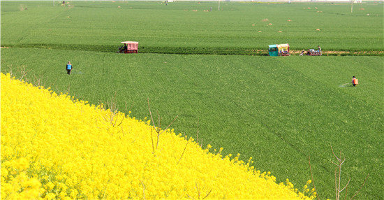 3月24日,河南省商水縣郝崗鎮(zhèn)北社村村民在管理麥田。春分到來,天氣變暖,鮮花盛開,素有“豫東糧倉(cāng)”之稱的商水縣進(jìn)入春耕備耕忙碌時(shí)節(jié),村民紛紛走向田野,伴著花香開展春季農(nóng)業(yè)生產(chǎn),田間地頭一片熱火朝天的繁忙景象。②7