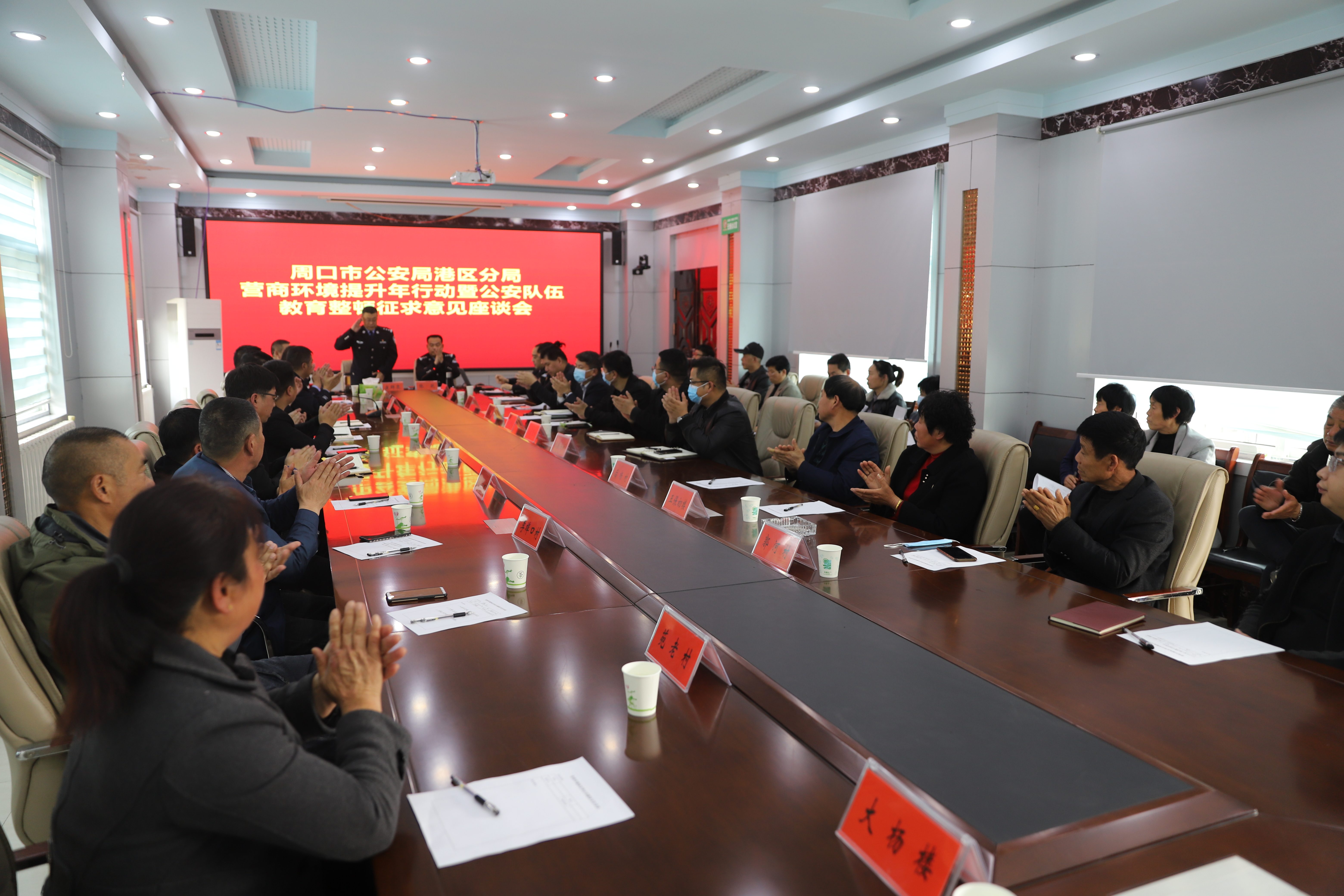 康群泉詳細(xì)介紹了分局為臨港經(jīng)濟(jì)發(fā)展提供保障和服務(wù)的12項(xiàng)新舉措,并誠(chéng)懇邀請(qǐng)各企業(yè)代表結(jié)合自身工作與行業(yè)實(shí)際,對(duì)港區(qū)公安工作多提寶貴意見和建議,助力公安機(jī)關(guān)更好地發(fā)揮職能作用,為企業(yè)發(fā)展?fàn)I造穩(wěn)定的社會(huì)環(huán)境、安全的治安環(huán)境、優(yōu)質(zhì)的服務(wù)環(huán)境。與會(huì)人員結(jié)合企業(yè)經(jīng)營(yíng)性質(zhì)和行業(yè)特點(diǎn),暢談了當(dāng)前治安環(huán)境、營(yíng)商環(huán)境的巨大變化,充分肯定了港區(qū)公安維護(hù)安全穩(wěn)定作出的貢獻(xiàn),貼近實(shí)際地講了一些關(guān)于基礎(chǔ)設(shè)施、交通管理、周邊環(huán)境方面的問(wèn)題、不足,并提出了對(duì)公安機(jī)關(guān)進(jìn)一步服務(wù)民營(yíng)企業(yè)發(fā)展的期望。