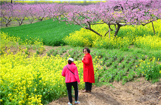 日前,游客在西華縣黃橋鄉(xiāng)裴莊村花開正盛的桃林里游玩。近年來,西華縣黃橋鄉(xiāng)因地制宜,大力發(fā)展“春賞桃花、秋賣果”農(nóng)旅經(jīng)濟(jì),助推鄉(xiāng)村振興。①5