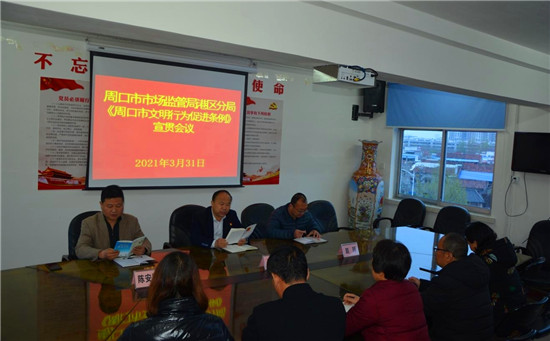 3月31日,周口市市場監(jiān)督管理局港區(qū)分局召開《周口市文明行為促進條例》宣貫會議。局長崔健就如何學習、遵守、貫徹、宣傳好《周口市文明行為促進條例》向全局同志提出具體要求。