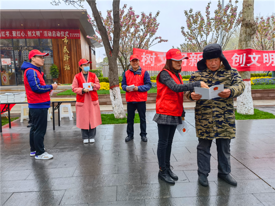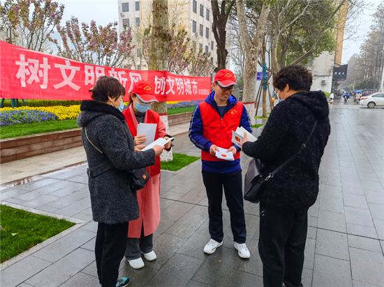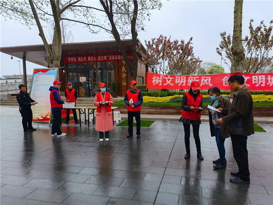 在活動(dòng)現(xiàn)場,城管志愿者頭戴小紅帽,身穿紅馬甲,向過往群眾發(fā)放講解《周口市文明行為促進(jìn)條例》,耐心解答市民提出的問題,以實(shí)際行動(dòng)倡導(dǎo)文明、傳播文明,展現(xiàn)城管志愿者的積極風(fēng)采和良好的精神風(fēng)貌。②10