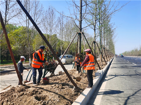 日前,氣溫回暖,春光明媚,正是種植樹木、養(yǎng)護(hù)苗木的好時(shí)節(jié)。連日來,在周口大道北段,園林工人利用現(xiàn)在好時(shí)節(jié),忙于栽植各種樹木,建設(shè)綠化工程。