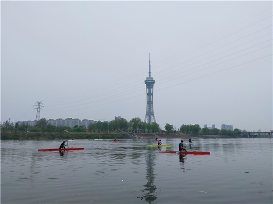 4月7日下午,市體校賽艇隊、皮艇隊、劃艇隊的運動員正在沙潁河河面上加緊訓練。他們力爭以最飽滿的熱情、最昂揚的斗志、最刻苦的精神、最堅韌的毅力,在賽場上爭金奪銀,為周口體育事業(yè)再上新臺階貢獻自己的力量。②8
