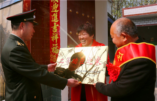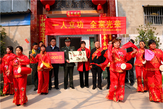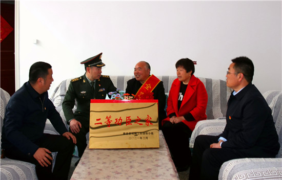 李峰說:“一張立功喜報,不僅是軍人榮譽的象征、成長進步的見證,也承載著軍人家屬的期盼與慰藉。功臣是實現強軍興軍目標的尖兵,他們在部隊建功立業(yè),我們力所能及服務保障好他們的家人,積極在全社會營造起‘功臣受愛戴、軍人受尊崇、軍屬受尊敬’的氛圍?!睘榇耍挂乜h人武部積極構建軍人軍屬榮譽體系,每逢重大節(jié)日,都要協調地方黨委、政府開展為現役軍人和軍屬送喜報,掛功臣匾、光榮牌等活動,通過活動激勵等形式,讓軍人軍屬享有更多的“專屬榮光”,努力營造“一人參軍,全家光榮;一人立功,全村光榮”的濃厚氛圍,更加堅定了軍屬支持子女獻身國防的決心,進一步激發(fā)了鹿邑籍官兵獻身軍營、報效祖國的積極性。②9