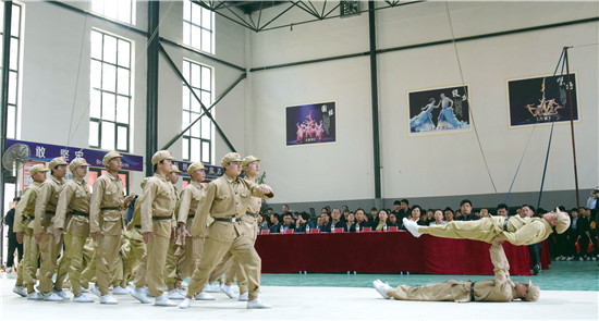 4月12日下午,項(xiàng)城市雜技藝術(shù)學(xué)校通過(guò)運(yùn)用雜技藝術(shù)編創(chuàng)的紅色雜技劇,在該校首次面向社會(huì)展演,以慶祝建黨100周年。同學(xué)們穿著解放軍服裝,模擬渡江、登城、翻越城墻、槍林彈雨戰(zhàn)斗等場(chǎng)景,演繹了一場(chǎng)紅色文化教育的情景劇,讓人耳目一新,受到大家一致好評(píng)。周口日?qǐng)?bào)·周道客戶端記者 梁照曾 攝