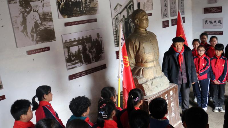 何國志老人在為孩子們講解吉鴻昌將軍身前事跡。