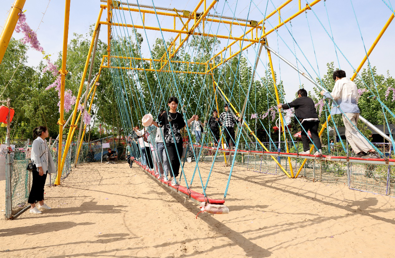 這個(gè)度假村建于2020年初,占地100多畝,擁有50多項(xiàng)娛樂(lè)休閑項(xiàng)目,包括蒙古包、農(nóng)家院等,整個(gè)游樂(lè)場(chǎng)處于沙灘之中,萬(wàn)里平原之中的沙灘風(fēng)情更有韻味。來(lái)看看這里都有啥好玩的?