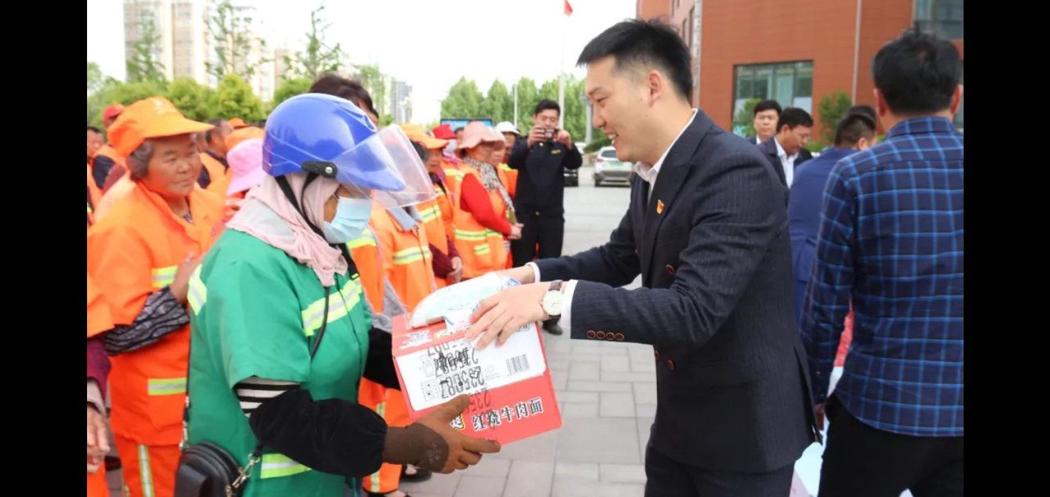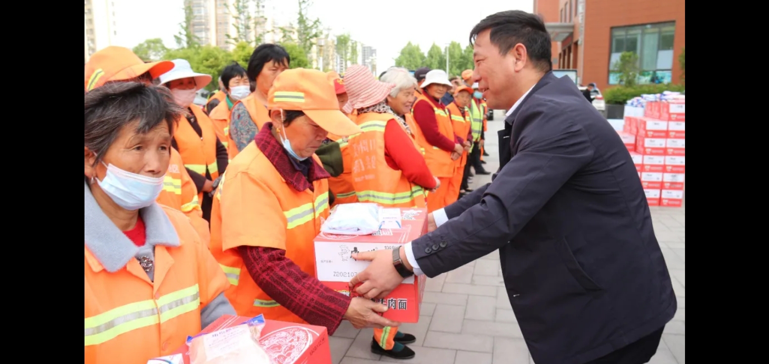 中原眾恒集團領(lǐng)導為環(huán)衛(wèi)工人發(fā)放慰問品