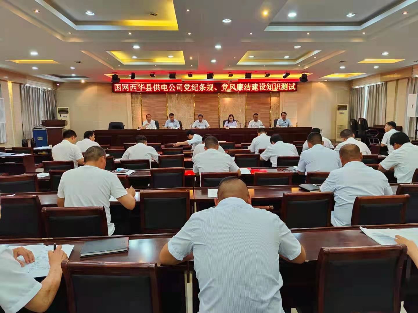 為切實(shí)加強(qiáng)黨員干部作風(fēng)建設(shè)、能力建設(shè),進(jìn)一步嚴(yán)明黨的紀(jì)律,不斷提高黨員干部思想理論素養(yǎng),增強(qiáng)黨性、黨紀(jì)觀念,6月24日,國(guó)網(wǎng)西華縣供電公司開展“知敬畏守底線”黨紀(jì)法規(guī)知識(shí)測(cè)試活動(dòng),該公司班子成員及全體黨員參加了知識(shí)測(cè)試。