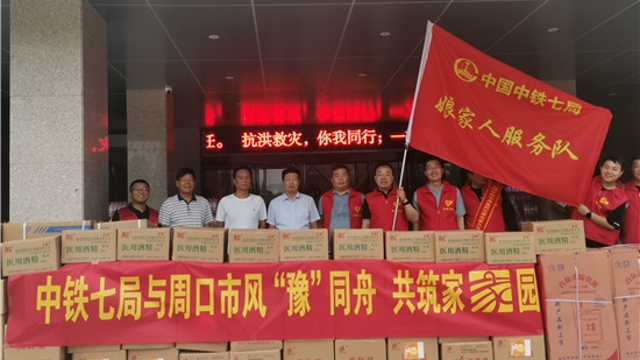 7月28日下午,中鐵七局集團有限公司“娘家人”服務隊,冒雨到黃泛區(qū)農場捐贈防汛物資。市總工會黨組成員、副主席李偉業(yè)參加了此次捐贈活動。