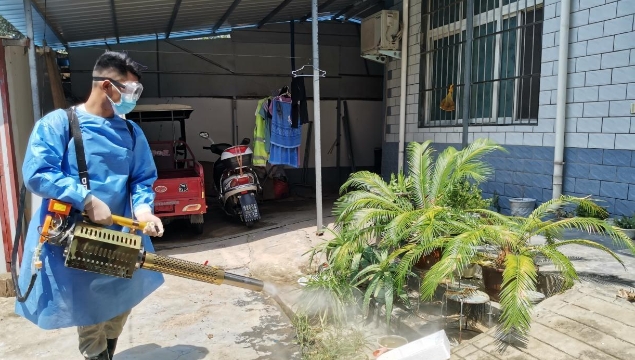 在女媧景區(qū),只見老關和其他3名消殺人員發(fā)動機器、拉出噴管、手提噴槍,一邊前進,一邊揮動,白色水霧隨之噴涌而出,所到之處細菌病毒“無處遁形”。大家齊心協(xié)力,很快就把景區(qū)的角角落落消殺個遍。