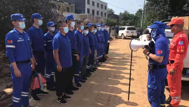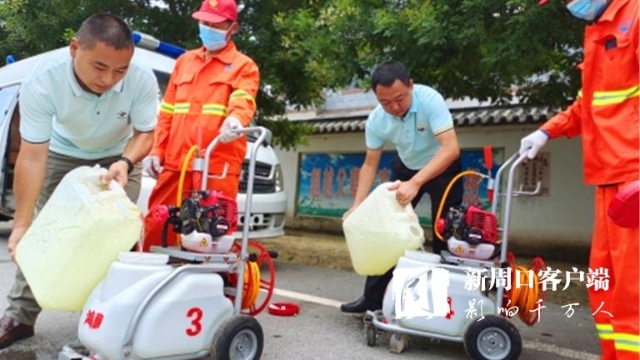 7月29日上午10時,在隊長肖永德的帶領下,周口川匯藍天救援隊30名隊員趕赴鄭州滎陽受災較重的賈峪鎮(zhèn)賈峪村進行災后消殺工作。