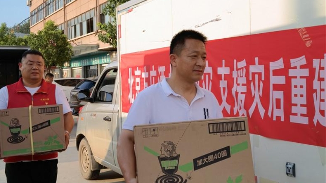 7月30日11時30分,在西華縣新的社會階層人士聯(lián)誼會牽頭下,北京方莊酒周口總代理負責人彭建立和員工一起載著價值6多萬元的酒精、蚊香等物品相繼來到西華縣黃橋鄉(xiāng)、遲營鄉(xiāng)、田口鄉(xiāng)等多個地方,親自將群眾最亟需的消毒、驅蟲用品送到他們手中。
