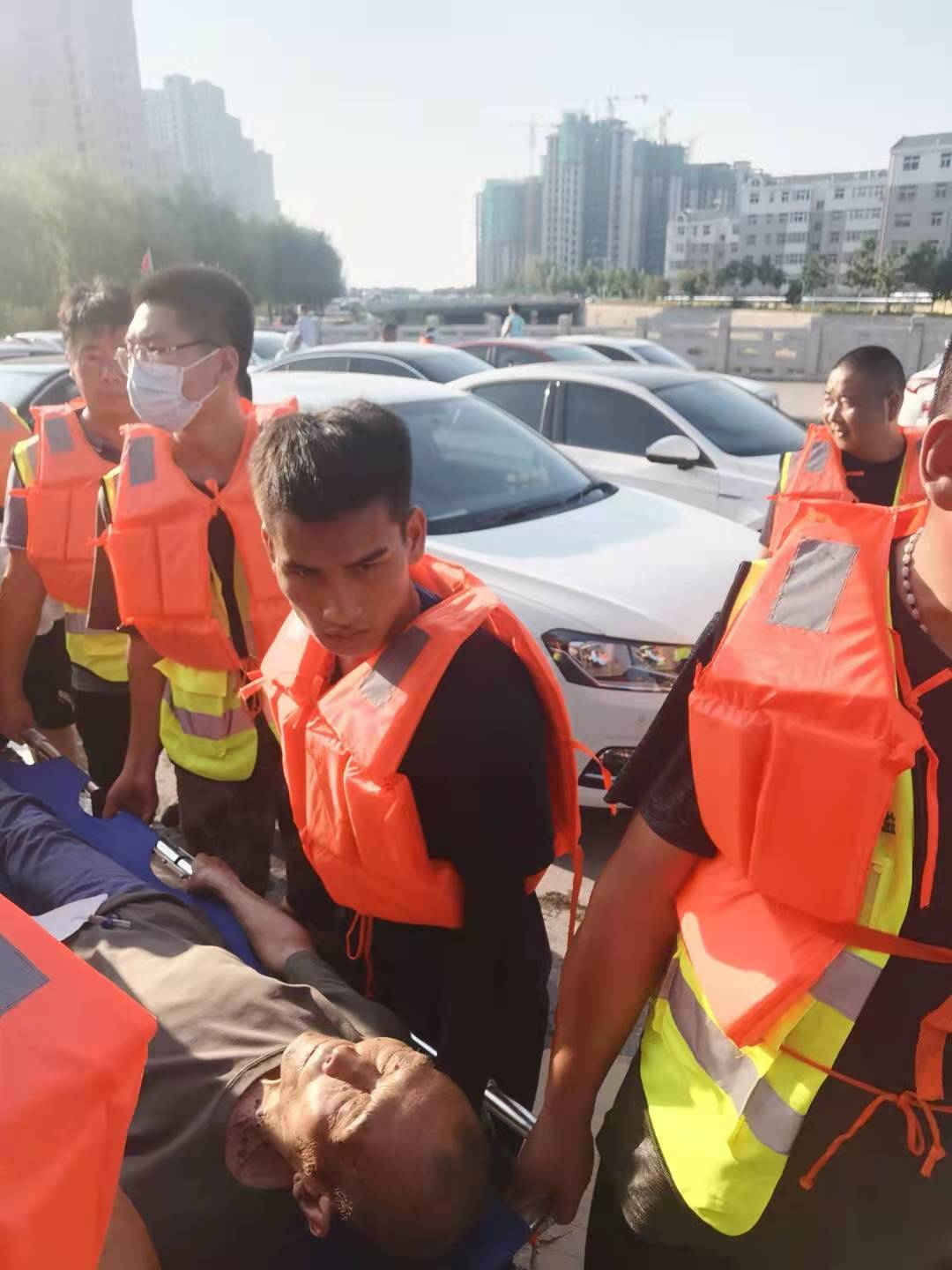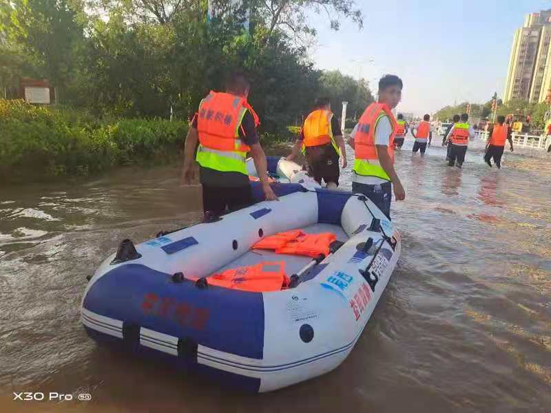 7月25日,新鄉(xiāng)衛(wèi)輝市紅十字會發(fā)布求援公告,已經返回鹿邑的救援隊立即上報縣應急管理局,請求到新鄉(xiāng)救災一線開展援救,18名救援人員攜帶船只4只、救生衣40余件、大功率發(fā)電機一臺以及救援物資3噸,于26日10時到達新鄉(xiāng)展開救援,轉移危重病人、搜救被困人員、挪移妨礙交通車輛……