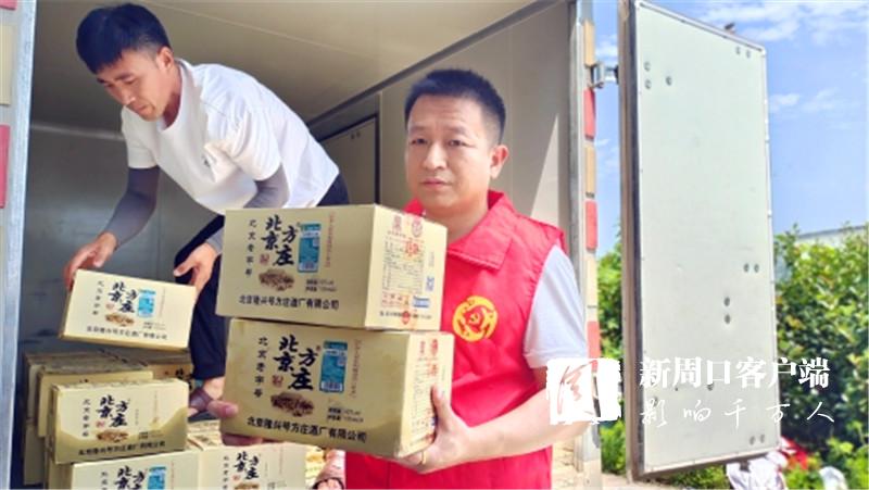 7月30日11時30分,在西華縣新的社會階層人士聯(lián)誼會牽頭下,北京方莊酒周口總代理負責(zé)人彭建立和員工一起載著價值6多萬元的酒精、蚊香等物品相繼來到西華縣黃橋鄉(xiāng)、遲營鄉(xiāng)、田口鄉(xiāng)等多個地方,親自將群眾最亟需的消毒、驅(qū)蟲用品送到他們手中。