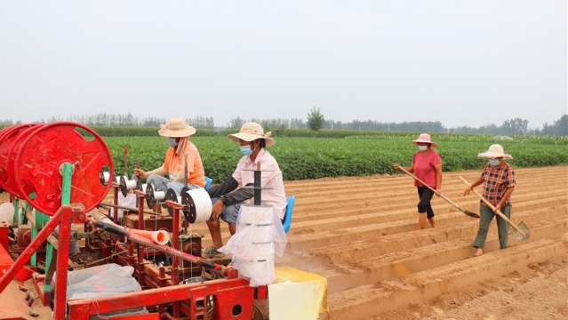• 近日,在扶溝縣一農(nóng)莊公司胡蘿卜種植基地,公司員工正駕駛拖拉機在田間起壟(如圖)。7月下旬以來,受三次強降雨和洪水影響,“中原菜都”扶溝縣設施蔬菜種植區(qū)域不同程度過水或發(fā)生內澇,對蔬菜產(chǎn)業(yè)發(fā)展造成嚴重影響。隨著汛情趨于穩(wěn)定,扶溝縣受災蔬菜種植戶不等不靠、爭分奪秒開展生產(chǎn)自救。