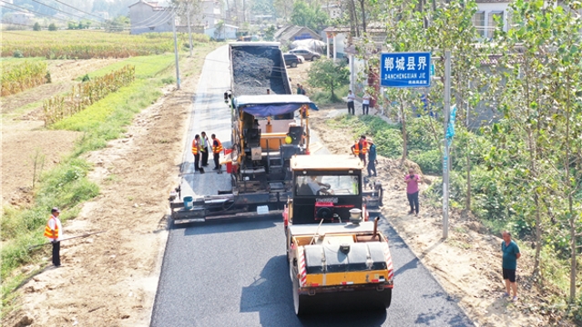 • 9月13日,記者在鄲城縣與淮陽區(qū)重要連接通道張葛路(鄲城張完鄉(xiāng)至淮陽葛店鄉(xiāng))搶修現(xiàn)場看到,經(jīng)過夜以繼日地前期搶修施工,目前正式進入鋪油工序。待今年年底全線貫通后,鄲城縣張完鄉(xiāng)、汲水鄉(xiāng)、虎崗鄉(xiāng)、吳臺鎮(zhèn)、李樓鄉(xiāng)和淮陽區(qū)葛店鎮(zhèn)沿線6個鄉(xiāng)鎮(zhèn)的數(shù)十萬居民將出行無憂,解除沿線數(shù)萬畝農(nóng)作物收割運輸難題。