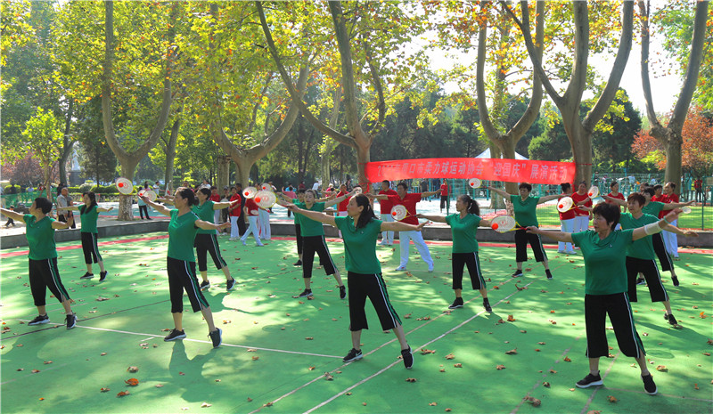 9月30日上午,市柔力球運動協(xié)會在周口人民公園內(nèi)舉行迎國慶柔力球展演活動,來自人民公園雙拍雙球柔力球隊、示范區(qū)柔力球隊、中心區(qū)柔力球隊、人民公園柔力球隊和競技柔力球隊的柔力球愛好者揮動球拍,以良好的精神風(fēng)貌展示了柔力球規(guī)定套路和對抗訓(xùn)練動作等,為國慶節(jié)獻(xiàn)禮。