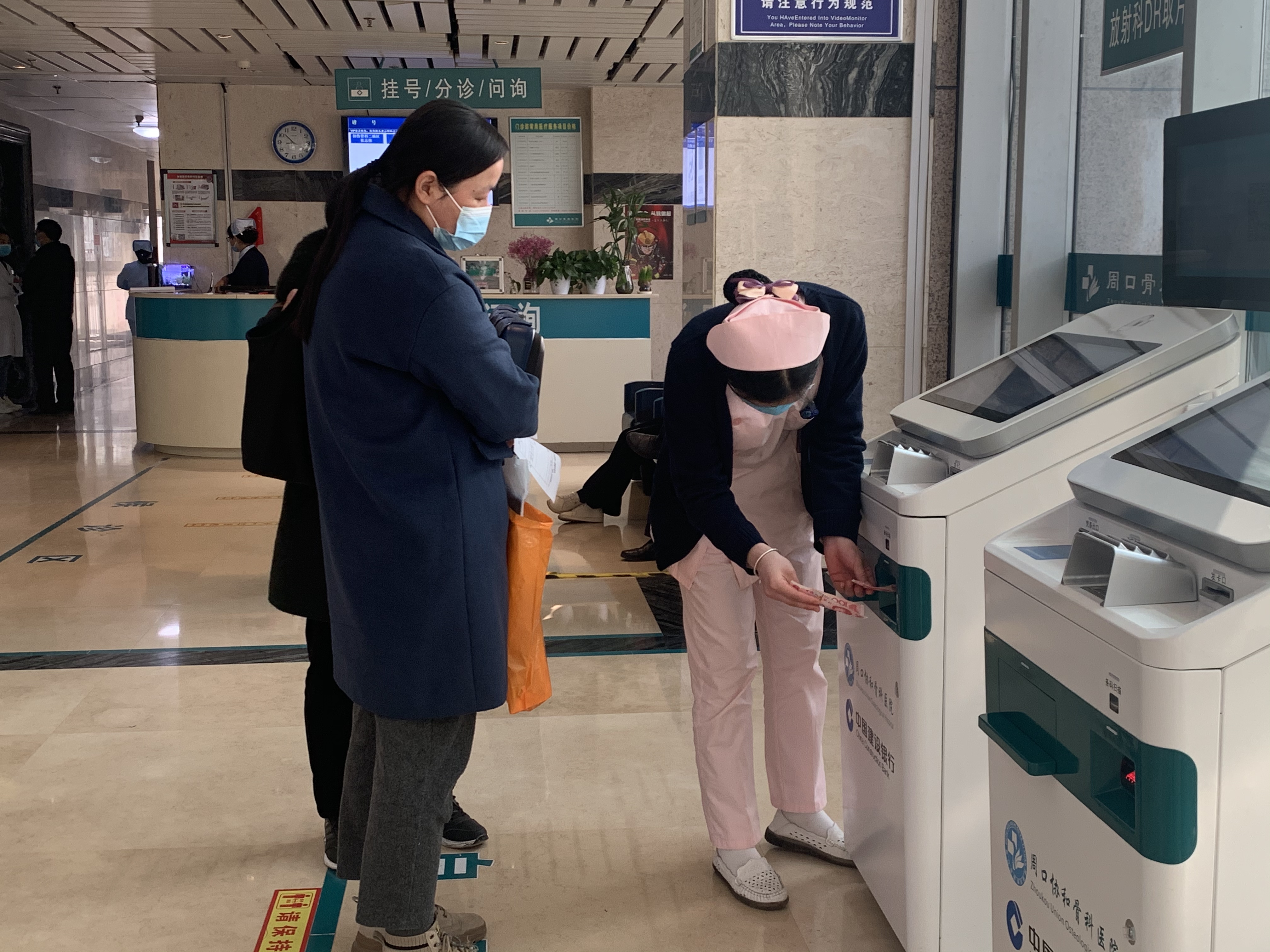 “您好,請出示下健康碼”“是要掛號嗎?我?guī)湍薄搬t(yī)保報銷在您右手邊”。10月25日,記者走進市協(xié)和骨科醫(yī)院時,此類的文明導醫(yī)用語隨處可聞。從淮陽區(qū)趕來就醫(yī)的李女士說:“年紀大了,眼花。掛號都是這護士閨女幫忙跑前跑后的,真感謝!”