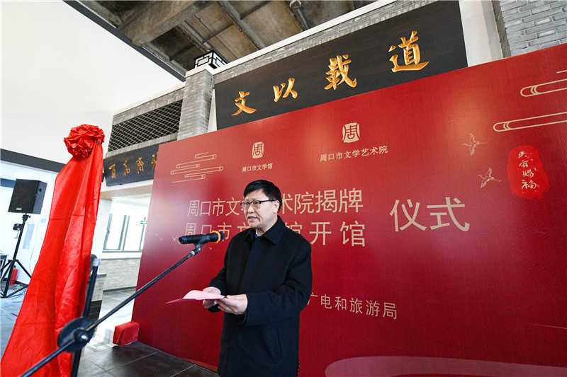 市文聯(lián)主席吳青峰在開館儀式上宣讀賀信