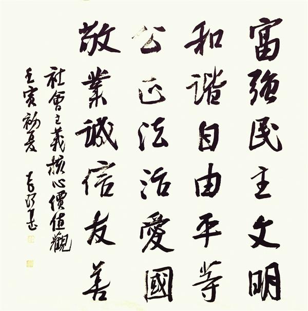 編者按:墨香浸潤(rùn)沙潁河畔,筆力雄健魅力三川。為大力弘揚(yáng)和培育社會(huì)主義核心價(jià)值觀,傳承周口地域文化特質(zhì)和精神標(biāo)識(shí),日前,周口市文明辦、周口市文學(xué)藝術(shù)界聯(lián)合會(huì)、周口市書法家協(xié)會(huì)通過周口報(bào)業(yè)傳媒集團(tuán)發(fā)出“作品征集令”,擬舉辦社會(huì)主義核心價(jià)值觀暨“道德名城”名家書法作品展。作品征集啟事發(fā)出后,周口籍書法名家及廣大書法愛好者紛紛投來精彩紛呈的書法作品,體現(xiàn)對(duì)社會(huì)主義核心價(jià)值觀的深刻理解,展示“道德名城、魅力周口”建設(shè)成果,講好周口故事,展現(xiàn)周口形象。今天起,本報(bào)特開設(shè)《社會(huì)主義核心價(jià)值觀暨“道德名城”名家書法作品》專欄,陸續(xù)刊發(fā)優(yōu)秀書法作品,以此營(yíng)造弘揚(yáng)和踐行社會(huì)主義核心價(jià)值觀的良好氛圍,用傳統(tǒng)書法技藝展現(xiàn)優(yōu)秀歷史文化資源,為“道德名城”增光添彩。敬請(qǐng)關(guān)注。