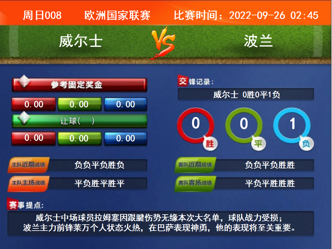 周日008 歐洲國(guó)家聯(lián)賽 威爾士VS波蘭