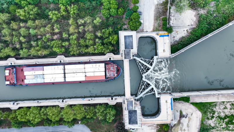 2021年6月,裕溪一線船閘擴容改造工程全面啟動,舊船閘被拆除,原位建設(shè)新船閘,預(yù)計2023年投入使用。相關(guān)資料顯示,改造后的裕溪一線船閘是全世界首座采用34米巨型三角閘門的船閘,設(shè)計最大船舶噸級為2000噸級,年設(shè)計通過能力7400萬噸,以應(yīng)對日益增長的貨運需求。