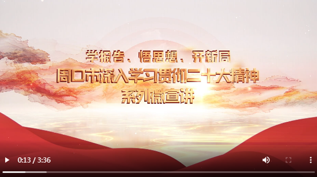 為深入學(xué)習(xí)貫徹黨的二十大精神,中共周口市委宣傳部、中共周口市委黨校和周口報(bào)業(yè)傳媒集團(tuán)共同制作“學(xué)報(bào)告 悟思想 新開局”系列宣講微視頻,將分專題陸續(xù)推出。