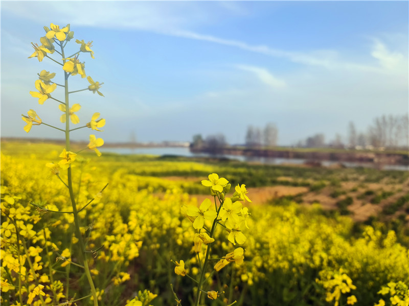 • 4月2日,春日明媚,沙潁河兩岸一片片金燦燦的油菜花“染黃”了大地,空氣中彌漫著香氣,大片的油菜花和漂亮的村居、田間勞作的農(nóng)民交織在一起,如詩如畫,美不勝收,讓人心曠神怡。