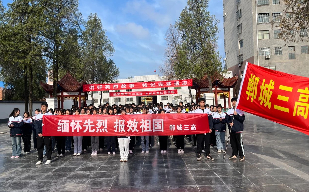 當(dāng)日上午,鄲城縣第三高級(jí)中學(xué)為悼念革命烈士,緬懷先烈的豐功偉績(jī),教育學(xué)生弘揚(yáng)民族精神,加強(qiáng)愛國主義教育,組織師生到鄲城縣烈士陵園開展“清明祭英烈 ”為主題的清明節(jié)祭掃活動(dòng)。