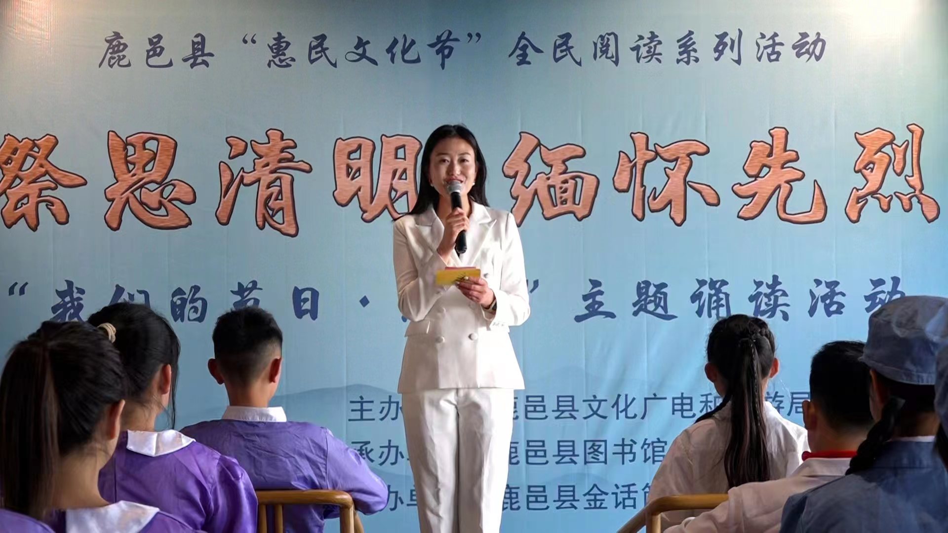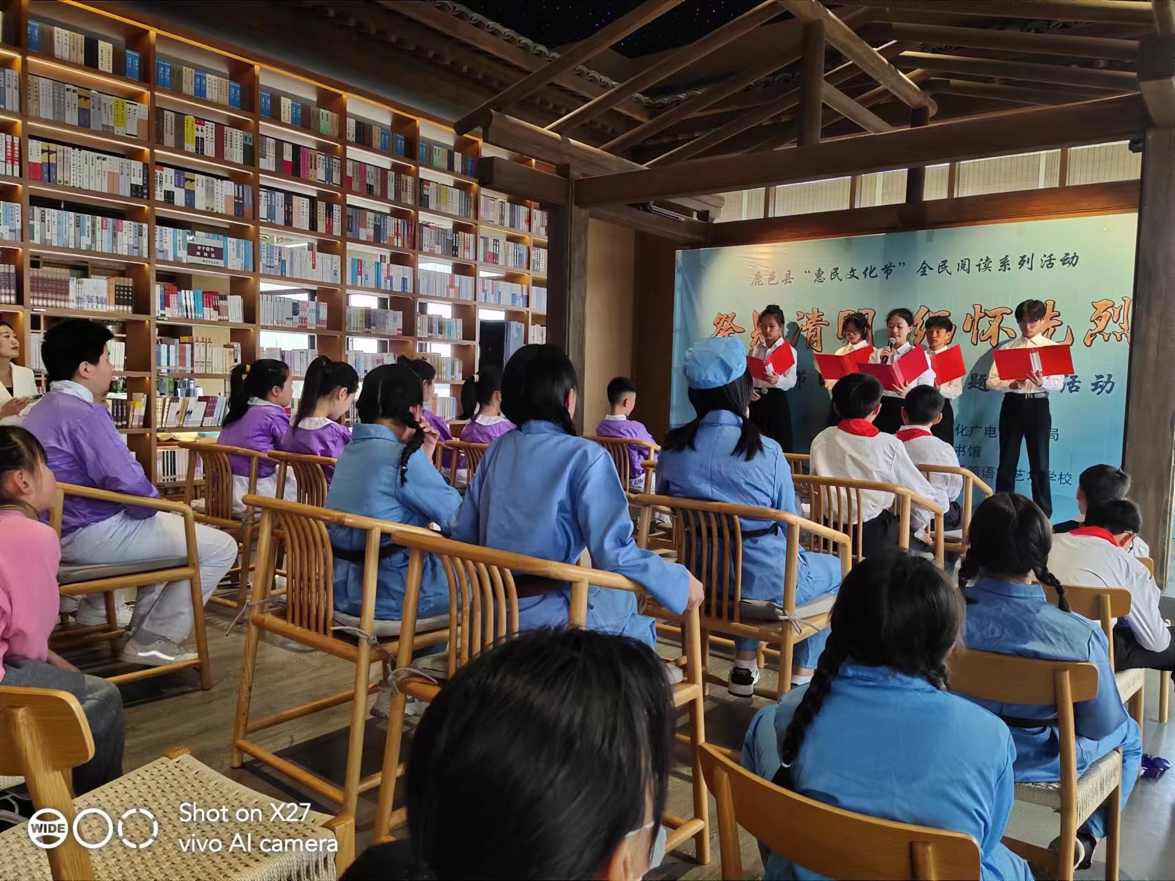 活動由該縣文化廣電和旅游局主辦,縣圖書館承辦,旨在緬懷追憶革命先烈英雄事跡,持續(xù)深化“惠民文化節(jié)”全民閱讀系列活動,向青少年學(xué)生普及清明節(jié)文化知識。當(dāng)日,在該縣圖書館三樓,縣圖書館工作人員講述全縣部分革命先烈英雄事跡和悲壯故事;縣文化廣電和旅游局工作人員講解清明節(jié)由來、清明節(jié)習(xí)俗、清明節(jié)為什么要文明祭祀、清明節(jié)為什么要祭祀和掃墓等知識;身著“小八路軍裝”的青少年學(xué)生依次登臺,聲情并茂地朗誦《中國人清明節(jié)》《清明的雨》《我愛你中國》《鄉(xiāng)愁》《清明詩詞》《不朽》《青松禮贊》《穿越時空的對話》等經(jīng)典詩詞,表達對革命先烈的無限崇敬和緬懷。