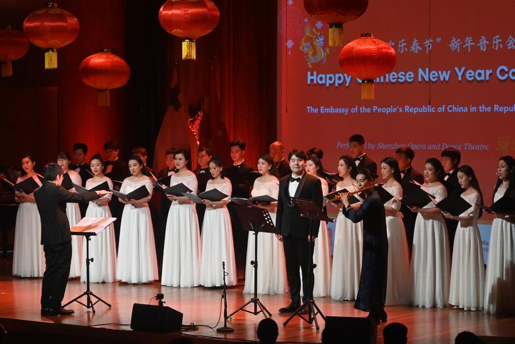 作為西班牙馬德里“歡樂春節(jié)”系列慶?;顒拥囊徊糠郑爸袊麓阂魳窌比涨霸隈R德里國家音樂廳舉行。從《陽關(guān)三疊》等中國詩詞合唱作品,到《敖包相會》《茉莉花》等中國民歌,再到《飲酒歌》等西方音樂選段,深圳歌劇舞劇院合唱團與民樂演奏家合力獻上一臺融合中西經(jīng)典曲目的音樂會。