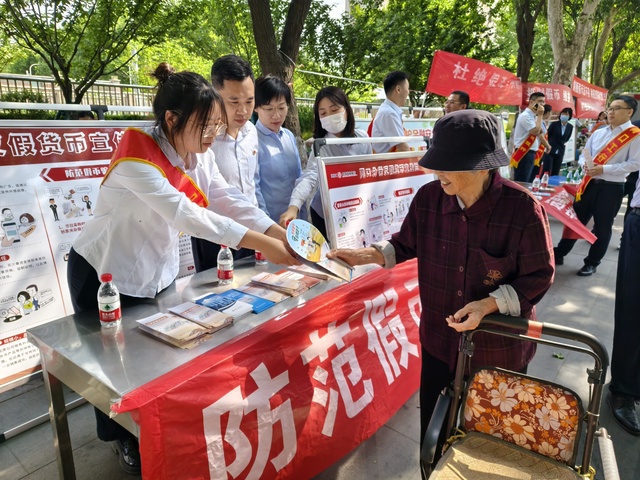 活動當天,該行組織員工前往五一廣場開展集中宣傳,通過設置宣傳咨詢臺,懸掛橫幅,向群眾發(fā)放反假幣、愛護人民幣和打擊假幣犯罪宣傳折頁,普及數(shù)字人民幣知識,宣傳人民幣防偽知識和識別假幣騙局,傳遞“防范假幣,保護自我”理念。針對老年客戶風險意識和識假能力不足問題,該行開展“一對一,手把手”現(xiàn)場教授假幣“看、摸、聽、測”等識別方法,切實守牢老年客戶的“錢袋子”。