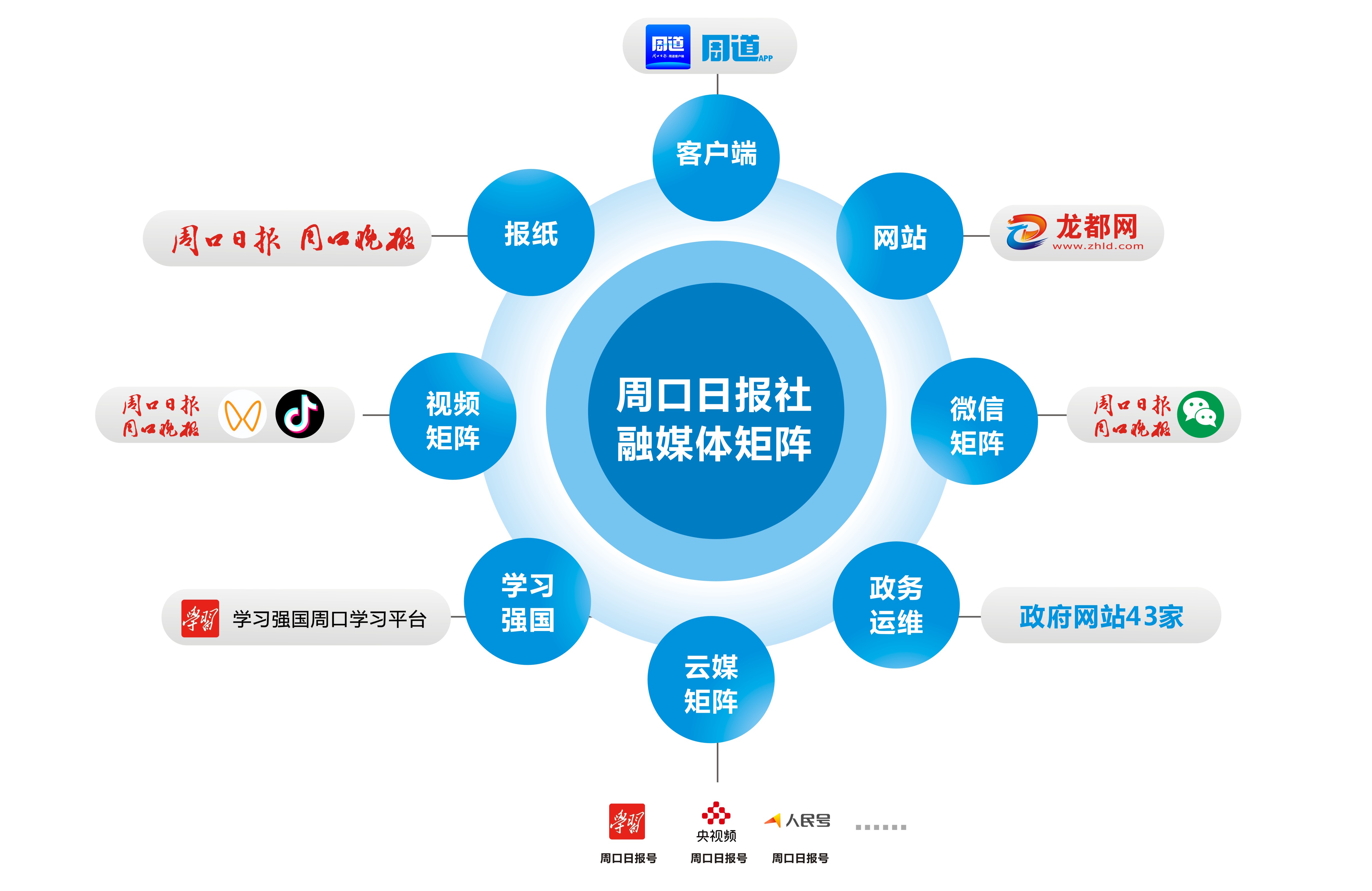 周口日報(bào)社始終堅(jiān)持“移動(dòng)優(yōu)先 內(nèi)容為王 導(dǎo)向?yàn)榛?創(chuàng)新為要”的發(fā)展方向,從體制機(jī)制、隊(duì)伍建設(shè)、采編創(chuàng)新、服務(wù)優(yōu)先、經(jīng)營轉(zhuǎn)型等多方面持續(xù)發(fā)力,不斷深化媒體融合發(fā)展。已形成涵蓋《周口日報(bào)》,《周口晚報(bào)》,龍都網(wǎng),周道客戶端,官方微信號、微博號、視頻號、抖音號,學(xué)習(xí)強(qiáng)國周口學(xué)習(xí)平臺、政務(wù)運(yùn)維等12大門類18個(gè)主體的立體傳播矩陣,托管運(yùn)維政府網(wǎng)站43家,用戶總數(shù)逾千萬。對外宣傳上,周口日報(bào)社還在學(xué)習(xí)強(qiáng)國客戶端、人民日報(bào)客戶端、央視頻客戶端等多個(gè)第三方平臺開設(shè)周口日報(bào)號,組成網(wǎng)絡(luò)云媒矩陣,形成了全方位、立體化、多角度展示周口形象的全媒體傳播新格局。
