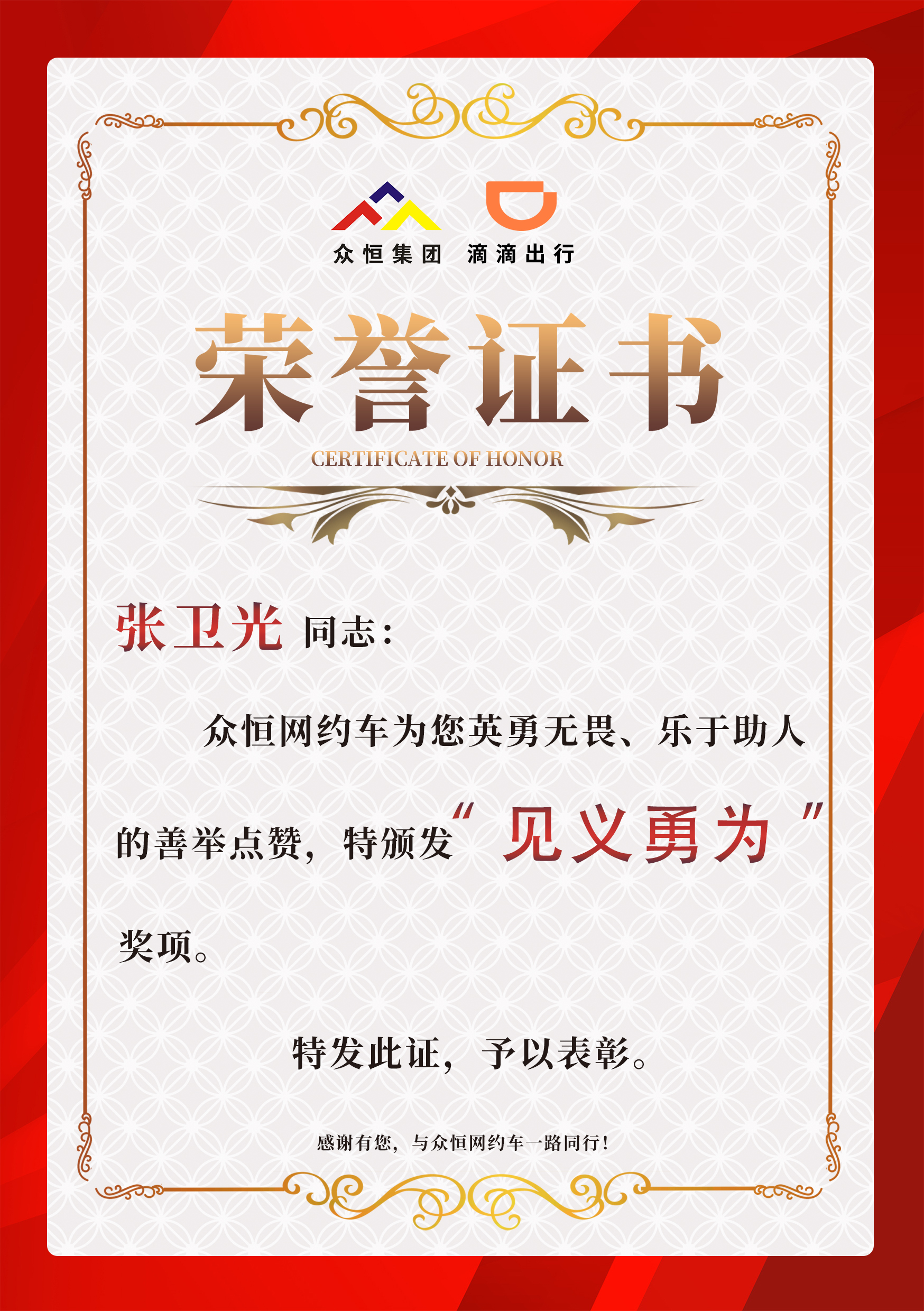 生死時(shí)速顯大愛 平凡善舉暖人心——記眾恒網(wǎng)約車司機(jī)張衛(wèi)光緊急送醫(yī)善舉